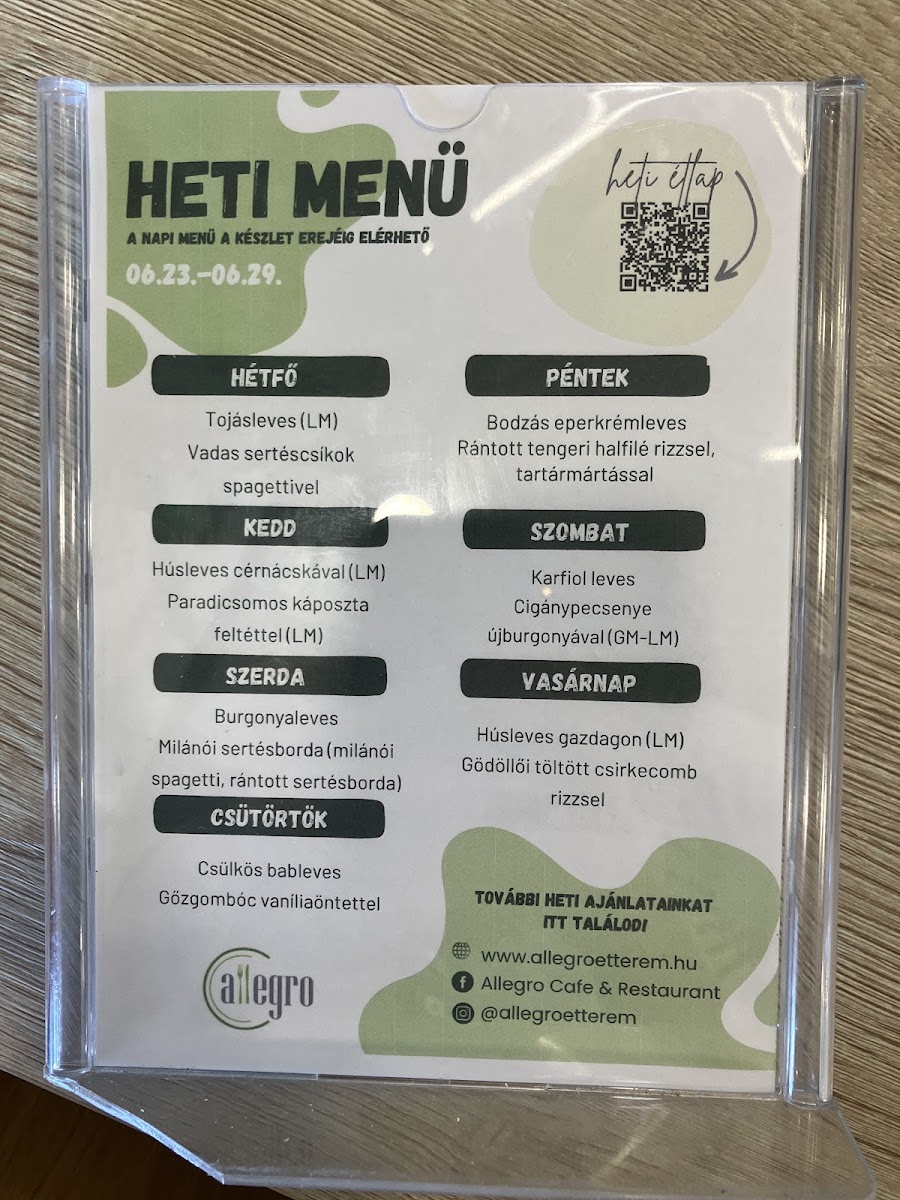 Whether you’re looking for a hearty meal or a quick bite, Allegro étterem is sure to impress with its excellent food and inviting ambiance.